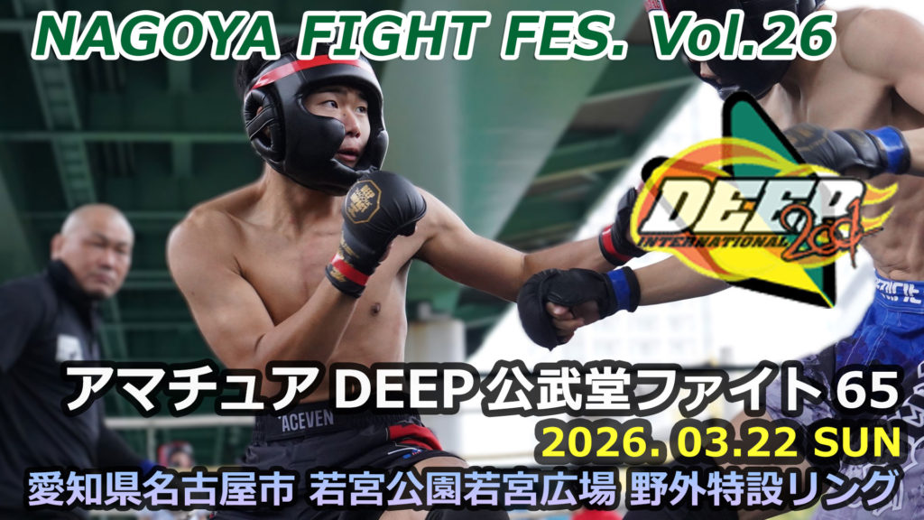 3月22日(日)、名古屋市中区・若宮広場 野外特設リングにて開催します「アマチュアDEEP公武堂ファイト65」の対戦カードを発表します。